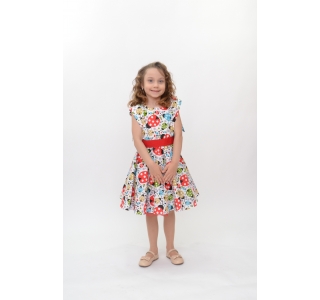Rochita cu imprimeu textil buburuze datorita croiului si extensiilor de la umeri, se poarta GARANTAT 2 ANI, pentru ca micuta ta sa se bucure mai mult timp de ea, inclusiv vara viitoare.